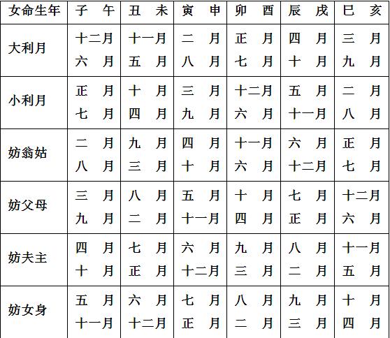 妨翁姑2,8/3,9/4,10/5,11/6,12/1,7娶嫁年夜利月小利月表。